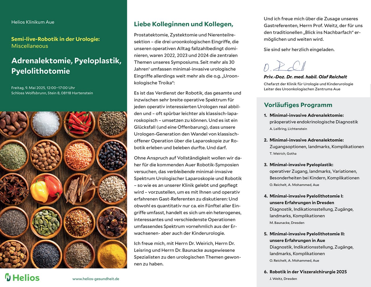 Seit 2019 ist das Roboter-System Da Vinci im Urologischen OP in Aue im Einsatz. In regelmäßigen Seminaren wollen wir Sie an unseren Erfahrungen teilhaben lassen, neue Entwicklungen aufzeigen und mit Ihnen ins Gespräch kommen.