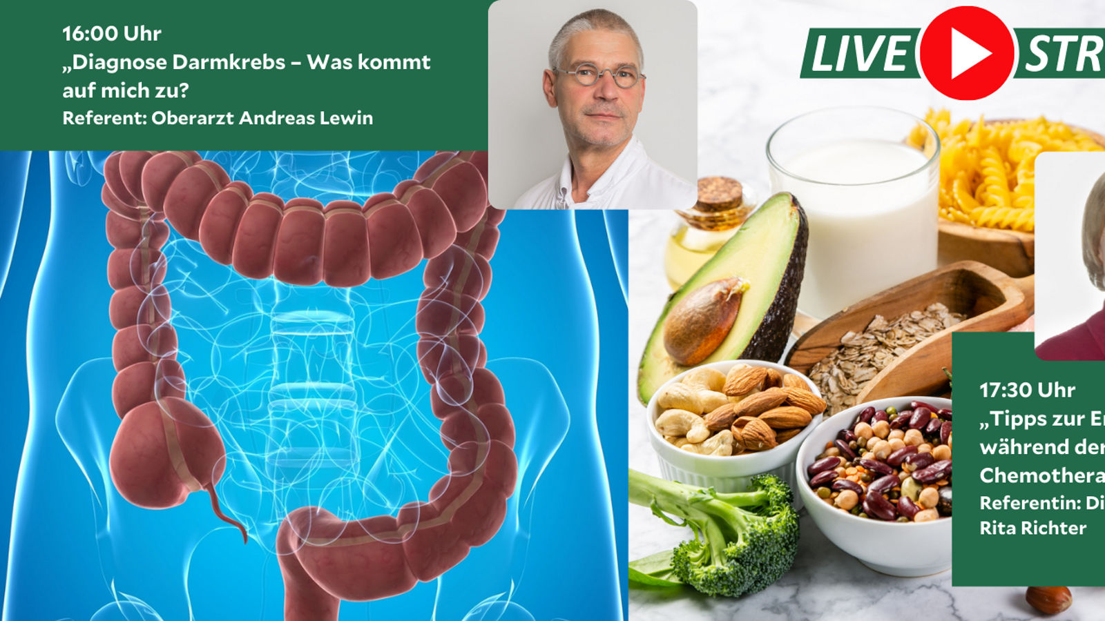 In seinem 30-minütigen Vortrag wird er auf die Diagnostik, Symptome, Therapiemöglichkeiten und die Früherkennung bei Darmkrebs eingehen und Zuschauerfragen beantworten.