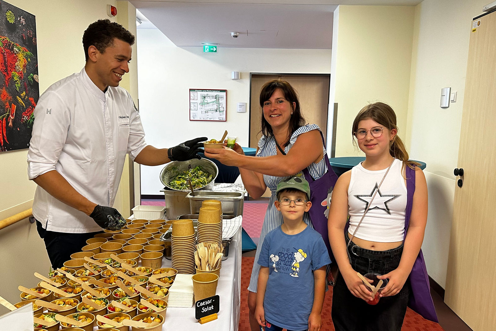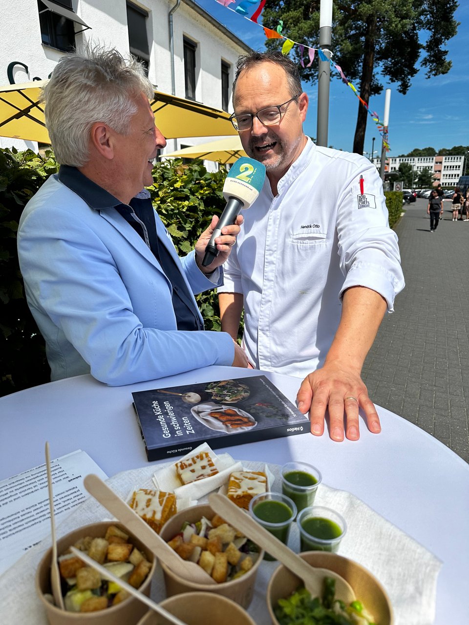 Großes Interesse weckte auch das Kochbuch „Gesunde Küche in schwierigen Zeiten“ von Zwei-Sterne-Koch Hendrik Otto, der gemeinsam mit seinem Team den Besuchern kleine Probierhappen servierte.