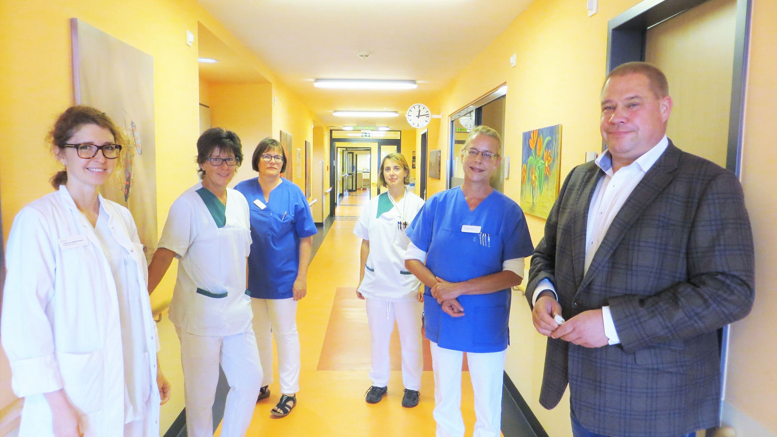 Das Sterben gehört natürlich auch auf einer Palliativstation dazu und ist immer präsent. Im Mittelpunkt steht der Tod allerdings nicht. „Bei uns geht es um den Erhalt und die Verbesserung der Lebensqualität unserer Patienten, das Nachlassen von belastenden Symptomen und das Wiedererlangen von Lebensfreude“, beschreibt Dr. Christine Germer, Departmentleiterin. Letzte Woche Mittwoch präsentierte das Palliativ-Team stolz seine derzeitige Station. Ärzte, Pflegekräfte und Therapeuten arbeiten hier Hand in Hand. Eine Besonderheit ist der gemütlich gestaltete Aufenthaltsraum. Er bietet nicht nur Platz für die Angehörigen, sondern dient auch zum fachlichen Austausch und bietet Raum für regelmäßig stattfindende Musik- oder Kunsttherapien.