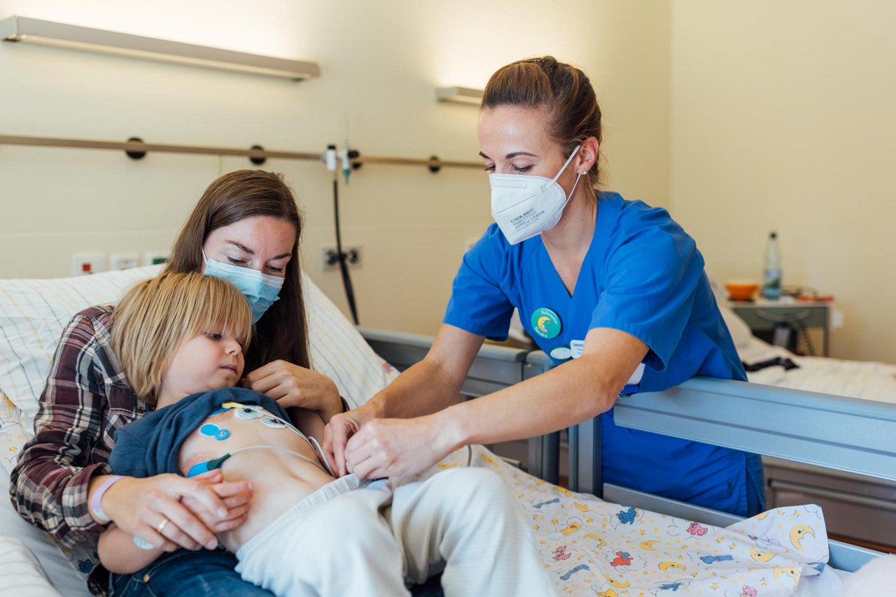 Im Herzzentrum Leipzig haben die Eltern die Möglichkeit, sich aktiv an der Pflege ihres Kindes zu beteiligen. Bei Neugeborenen, Säuglingen, Kleinkindern und Patienten mit schwerer Behinderung kann ein Elternteil Seite an Seite mit dem Patienten im Zimmer untergebracht werden.
