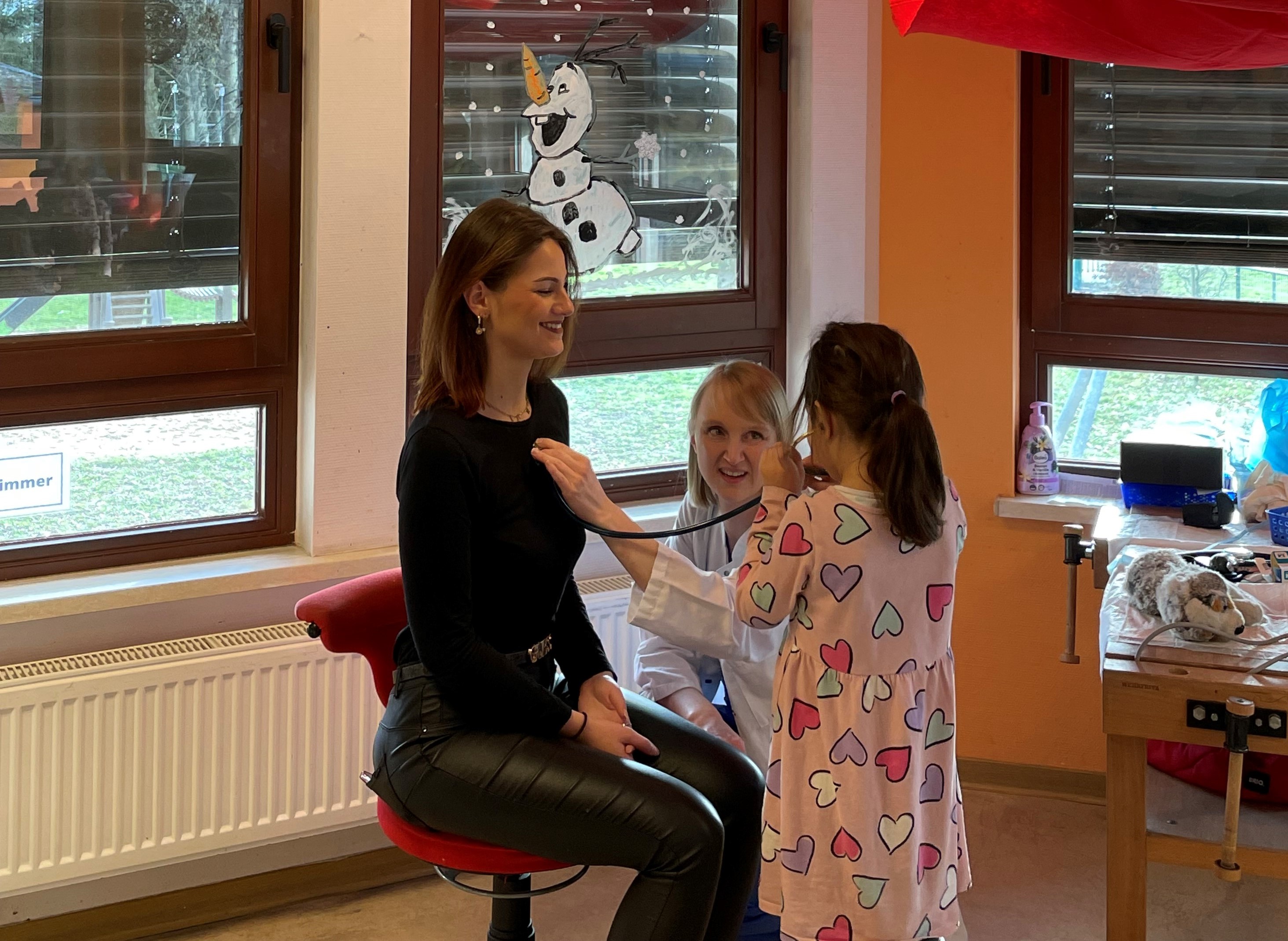 Bei dem Besuch wurde achtzig Kindern, im Alter von vier bis sechs Jahren, spielerisch das richtige Verhalten in Notfallsituationen und die Arbeit in der Notfallambulanz erklärt. Mit Notfallsanitäter Eric Weghenkel konnten die Kinder den „Pflaster-Pass“ ablegen. Als Highlight des Besuches schlüpften die Kinder, unter Anleitung von Frau Meyer und Frau Dannenberg, selbst in die Rolle einer Ärztin bzw. eines Arztes, um die Erzieher:innen abzuhören und Verbände anzulegen.