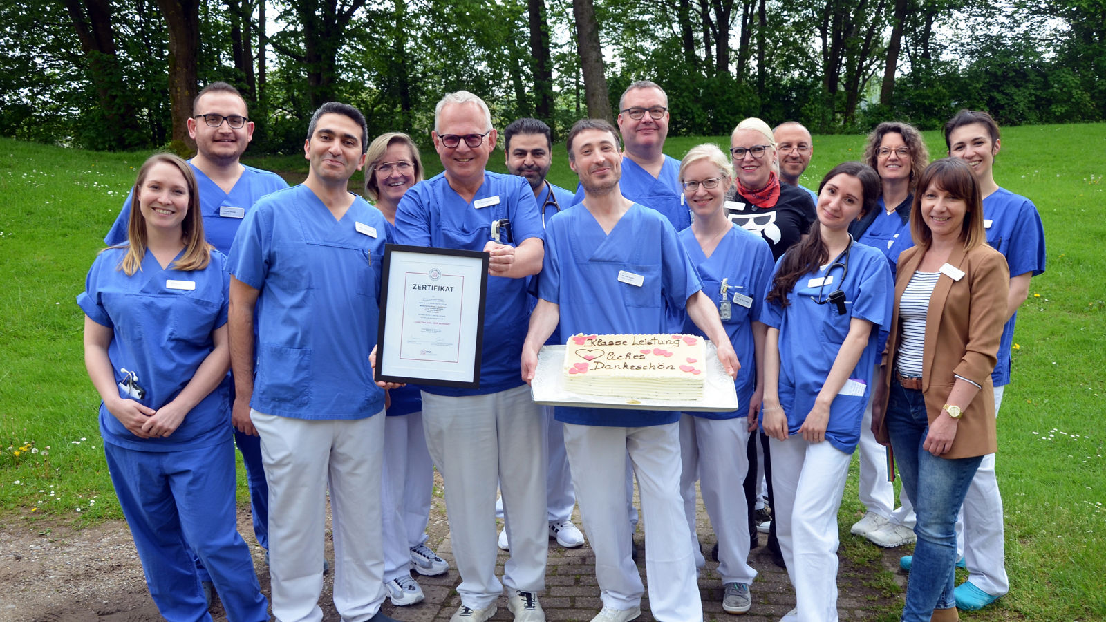 Die Medizinische Klinik I des Helios Klinikums Schwelm hat eine besondere Anerkennung erhalten und kann damit die exzellente kardiologische Versorgung unterstreichen: die kardiologische Abteilung am Klinikum wurde mit dem begehrten "Chest Pain Unit" (CPU)-Zertifikat der Deutschen Gesellschaft für Kardiologie – Herz- und Kreislaufforschung e.V. (DKG) ausgezeichnet. Diese renommierte Zertifizierung bestätigt die Erfüllung strenger Qualitätsstandards und das Vorhandensein erstklassiger medizinischer Ressourcen zur Behandlung von Patient:innen mit Brustschmerzen, die auf eine akute Herzerkrankung hindeuten.